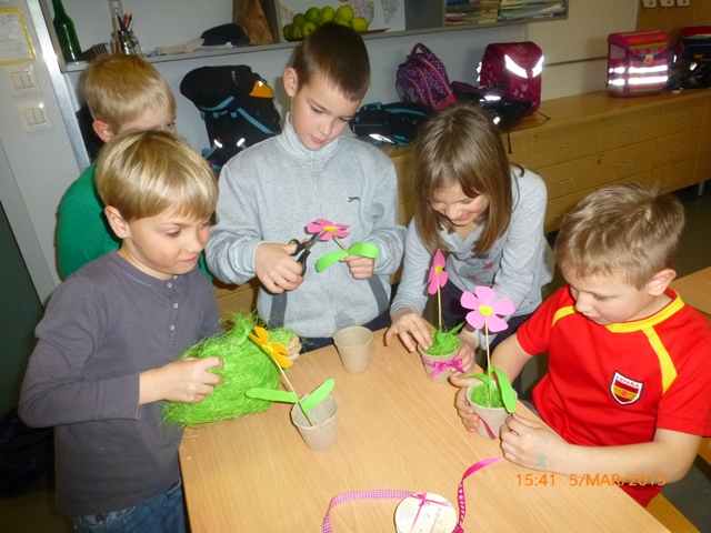 Pred praznikom žena so učenci 3. in 4. skupine OPB-ja na matični šoli ustvarjali predvsem za svoje mamice. Izdelovali so rožice in z njimi na praznični dan presenetili mamice. Upamo, da so “lončnice” v domove prinesle veselje in pomlad.