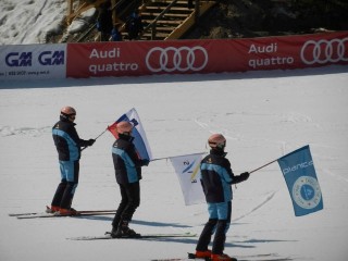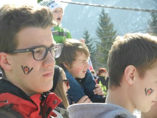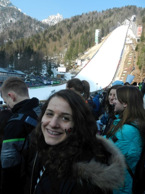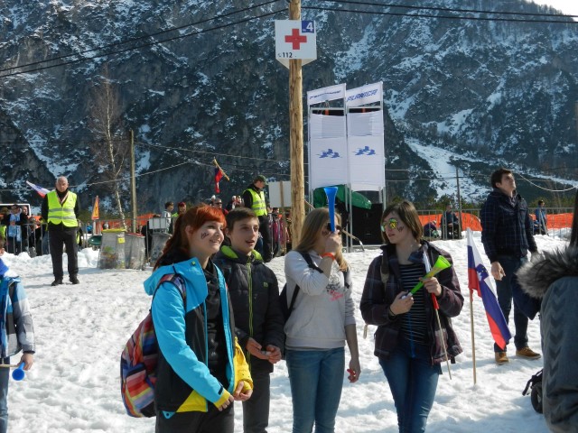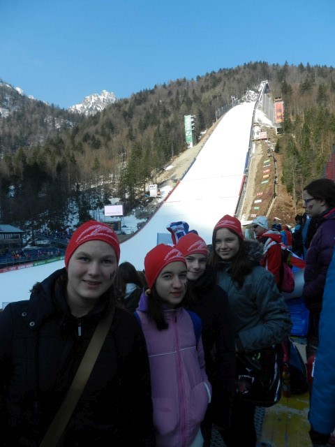 S kapami pokrovitelja na glavah smo se odpravili proti tribunam. Sledil je trening, ki smo ga z navdušenjem spremljali. Bučni aplavzi, glasba, vsem znana Planica – snežna kraljica, animacija napovedovalca, še sonce nas je začelo prijetno greti.