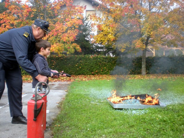 Oktober je znan kot mesec požarne varnosti, zato smo učenci prve triade PŠ Višnja Gora v petek, 8. oktobra, ob zaključku tedna otroka obiskali gasilski dom v Višnji Gori. Tam so nas pričakali izkušeni gasilci, ki so nam predstavili svoje delo, gasilska oblačila ter gasilsko vozilo z opremo. Mlada gasilska desetina, katere člani so učenci naše šole, nam je pod vodstvom mentorja demonstrirala vajo z vedrovko, s katero se potegujejo za pokale na gasilskih tekmovanjih. Za tem so gasilci izvedli manjši prikaz gašenja požara z gasilnim aparatom. Za zaključek pa so si učenci smeli ogledati tudi prostore gasilskega doma, pri čemer se kar niso mogli načuditi številčni zbirki pokalov. Brez dvoma je ta obisk na učence naredil velik vtis in marsikdo izmed njih se je že v naslednjih dneh včlanil v gasilsko društvo.