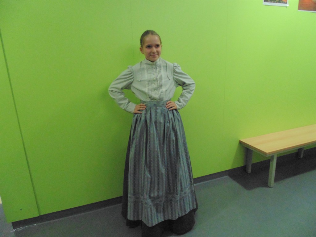 Tekom raziskovalnega dela so eno od učenk oblekli tudi v odraslo žensko prekmursko narodno nošo. Požela je pravi val navdušenja.