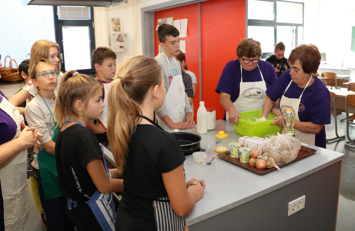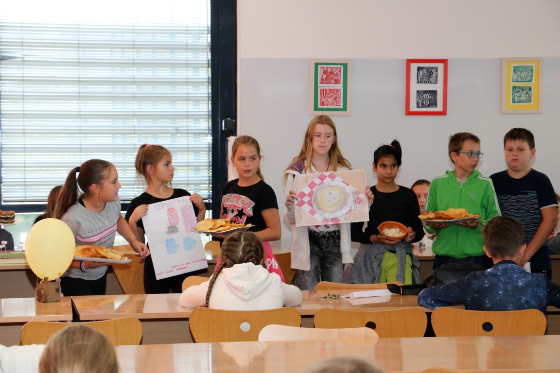 Ko so bile jedi pripravljene, so učenci pripravili pogrinjke in jedi poskusili. Za konec pa so se vsi posladkali s tradicionalno prekmursko gibanico.