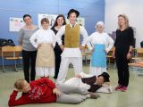 Zatem je sledilo še predavanje državnega svetnika Marjana Maučca, ki nam je nazorno predstavil zgodovinsko dogajanje na območju Prekmurja, spregovoril nekaj besed o pomenu domoljubja za obstoj naroda, nato pa naše učence na domiseln in duhovit način pozval k razvozlavanju pomena skrbno izbranih prekmurskih narečnih besed, povezanih s kolinami, kulinariko …