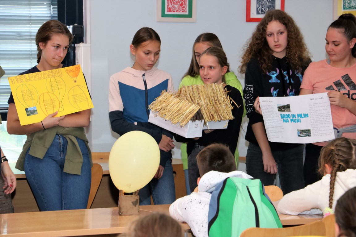 Po uvodni predstavitvi je nekaj učencev v učilnici tehnike in tehnologije izdelalo pravi butaj iz lesa, drugi pa so ilustrirali prekmursko zgodbo o Povodnem možu.
