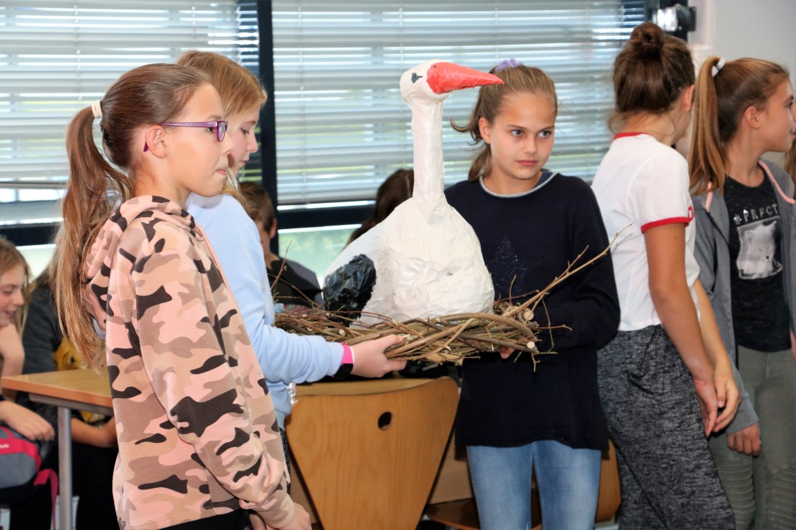 Učenci so poleg tega izdelovali še lesene spominke, na katere so s pomočjo pirografa vžgali motive s Prekmurja, z akrilnimi barvami barvali lectova srca in kaširano štorkljo ter pletli njeno gnezdo.