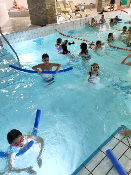 Vsak dan se dvakrat odpravimo v bazen, kjer pridno vadimo plavanje ter izpopolnjujemo svoje plavalne tehnike. Učenci pogumno premagujejo izzive in z vsakim dnem postajajo bolj samozavestni plavalci.