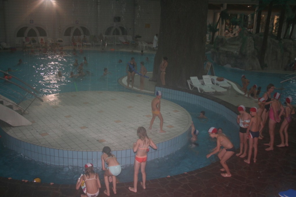 Deževna torek in sredo smo plavanje vadili v notranjih bazenih, nekateri pa smo se za kratek čas  preskusili tudi v zunanjem bazenu. Delo je potekalo po ustaljenem urniku. Ogledali smo si tudi gusarsko naselje hišic na vodi in indijansko vas.Po plavanju smo imeli video analizo po plavalnih skupinah z nemenom izboljšanja tehnik plavanja. Prvič smo odšli tudi v  trgovino po nakupih. Večer smo zaključili s kvizom v športni dvorani.