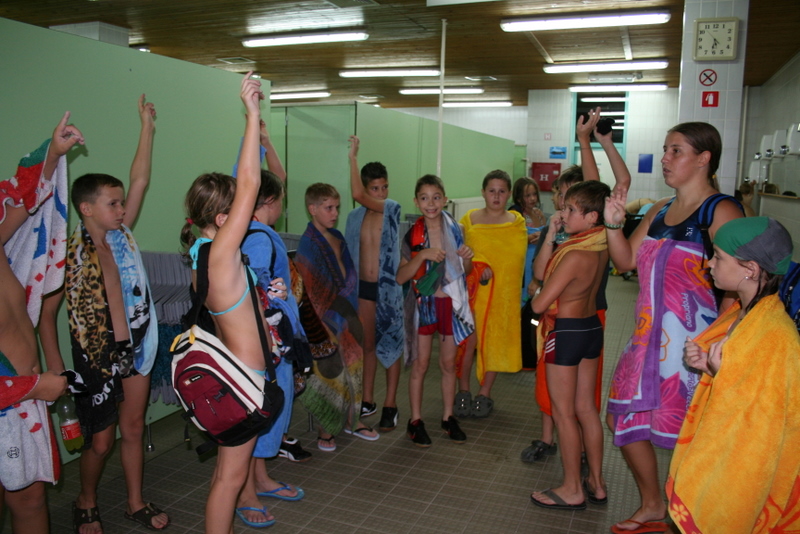 Deževna torek in sredo smo plavanje vadili v notranjih bazenih, nekateri pa smo se za kratek čas  preskusili tudi v zunanjem bazenu. Delo je potekalo po ustaljenem urniku. Ogledali smo si tudi gusarsko naselje hišic na vodi in indijansko vas.Po plavanju smo imeli video analizo po plavalnih skupinah z nemenom izboljšanja tehnik plavanja. Prvič smo odšli tudi v  trgovino po nakupih. Večer smo zaključili s kvizom v športni dvorani.